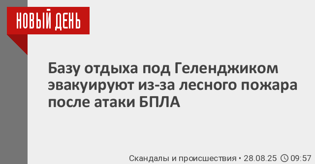 Под Геленджиком эвакуируют базу отдыха из-за лесного пожара, возникшего ночью после падения обломков украинского беспилотника. Для отдыхающих открыли пункт временного размещения в сельской школе. Об этом сообщил глава Геленджика Алексей Богодистов.