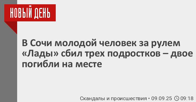 Смертельное ДТП с двумя погибшими произошло накануне в Сочи. На улице Мира около 20:20 25-летний водитель автомобиля «Лада Гранта» сбил трех подростков, которые переходили дорогу по нерегулируемому пешеходному переходу.