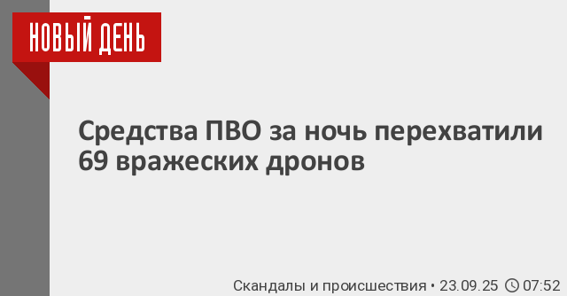 «С полуночи до 7.00 мск дежурными средствами ПВО уничтожено 69 украинских беспилотных летательных аппаратов», – говорится в сообщении.