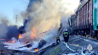 Ранее пресс-служба МЧС России сообщила, что пожарные тушат шесть вагонов с горючими материалами после столкновения грузовика и товарного поезда в районе станции Рыжиково в Смоленской области. В ликвидации последствий ДТП задействованы более 40 специалистов и 10 единиц техники.