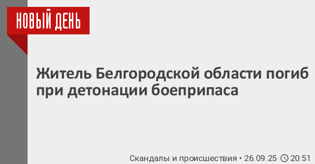 В Белгородской области в результате детонации боеприпаса погиб мирный житель. Об этом сообщил глава региона Вячеслав Гладков.