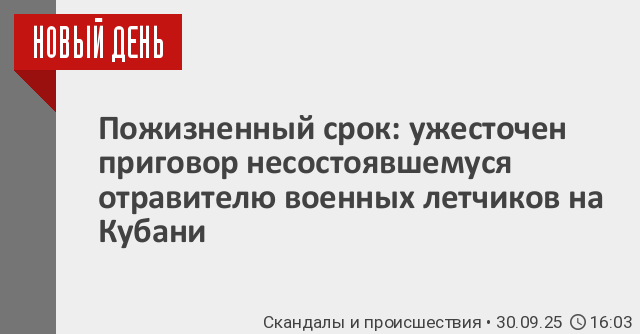 Апелляционный военный суд ужесточил приговор уроженцу Мелитополя Егору Семенову за попытку отравления выпускников Армавирского высшего военного авиационного училища летчиков противовоздушной обороны в Краснодарском крае до пожизненного срока.