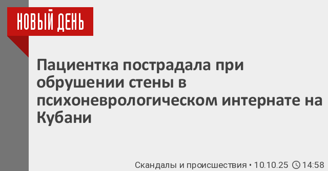 В Краснодарском крае произошло обрушение в психоневрологическом интернате. В результате пострадала пациентка. Об этом сообщили в прокуратуре.