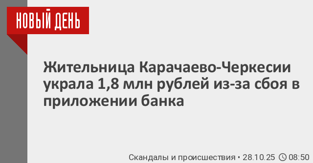 В Карачаево-Черкесия 48-летняя женщина воспользовалась сбоем в мобильном приложении банка и перевела сыну 1,8 млн рублей, которых у нее не было. Об этом сообщает «МВД Медиа».