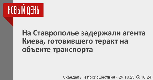 ФСБ задержала жителя Ставропольского края, который планировал подрыв на объекте транспортной инфраструктуры региона по заданию украинских спецслужб.