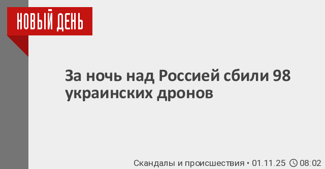 Средства противоздушной обороны за ночь уничтожили 98 украинских беспилотников над десятью российскими регионами. Об этом сообщило Минобороны РФ.