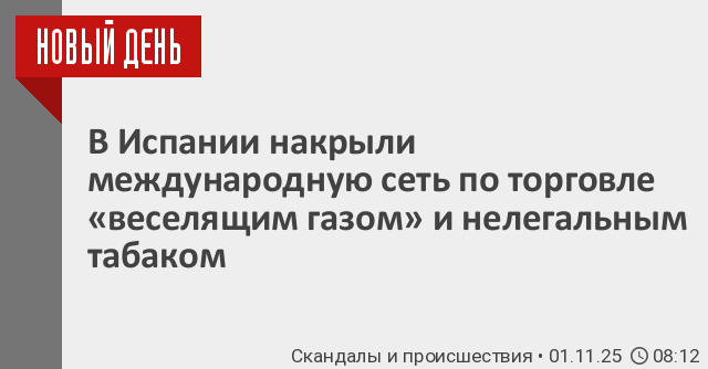 Полиция Испании объявила в пятницу, что ликвидировала международную сеть по торговле закисью азота, широко известной как «веселящий газ», и контрабандным табаком.