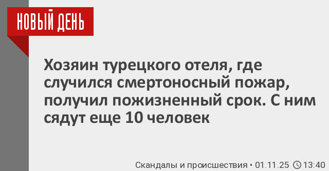 Турецкий суд в пятницу приговорил владельца отеля на горнолыжном курорте и еще 10 человек к пожизненному заключению, признав их виновными в грубой халатности в связи с гибельным пожаром, охватившим территорию отеля, сообщило государственное агентство Anadolu.