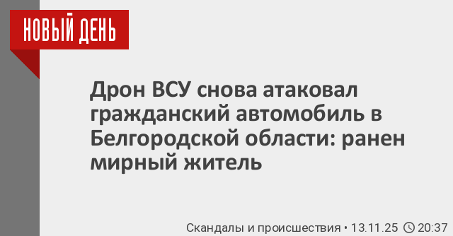 В Белгородской области в результате очередной атаки украинского беспилотника по гражданскому автомобилю ранения получил мирный житель. Об этом сообщил глава региона Вячеслав Гладков в своем телеграм-канале.