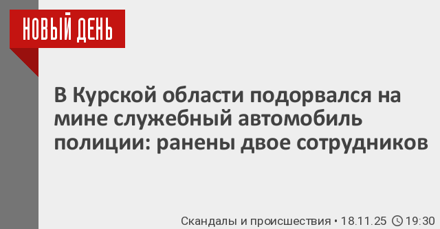 В Курской области на взрывном устройстве подорвался служебный автомобиль полиции, в результате чего ранения получили двое сотрудников внутренних дел. Об этом сообщил глава региона Александр Хинштейн в своем телеграм-канале.