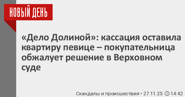 Второй кассационный суд в Москве признал законными решения Хамовнического суда столицы и Мосгорсуда по резонансному делу о продаже квартиры певицы Ларисы Долиной. Таким образом, суд отклонил жалобу потерпевшей стороны – Полины Лурье, которая приобрела квартиру певицы летом 2024 года, и оставил право собственности на недвижимость за Долиной. Лурье будет обжаловать этот вердикт в Верховном суде России. Напомним, артистка продала свою квартиру Лурье в центре Москвы и позже объявила, что совершила сделку под влиянием мошенников, отдав им деньги. В итоге Долина отсудила квартиру обратно, но деньги добросоветной покупательнице так и не вернула.