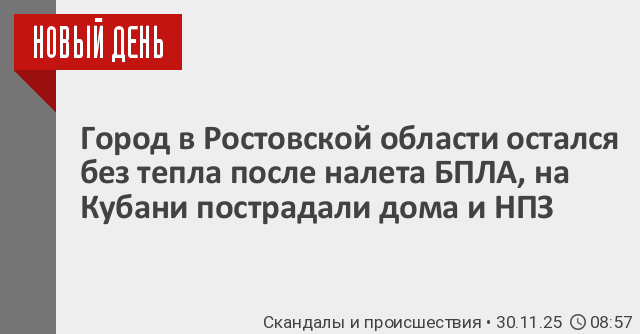 В городе Гуково из-за атаки БПЛА повреждена котельная – без отопления остались 128 многоэтажных домов, две больницы, четыре школы и шесть детских садов. Об этом сообщил губернатор Юрий Слюсарь. «После обследования котельной саперами, на объекте приступят к восстановительным работам»,– написал глава региона в своем телеграм-канале. Кроме того, по данным Слюсаря, на одном из промышленных предприятий в Новошахтинске произошел пожар на площади 50 кв. м. Возгорание оперативно потушили. Пострадавших при ночном налете БПЛА на Ростовкую область нет.