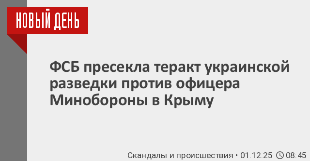 ФСБ сообщила о предотвращении в Крыму теракта украинской военной разведки против высокопоставленного российского военнослужащего.