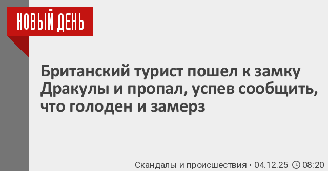 В Румынии растёт беспокойство в связи с исчезновением Джорджа Смита, 18-летнего британского студента, который пропал десять дней назад в горах Бучеджи, недалеко от замка Бран, популярного туристического места, более известного как обитель Дракулы. Молодой турист обратился за помощью 23 ноября, сообщив, что страдает от «переохлаждения и истощения». С тех пор его следы исчезли.