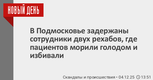 «Следственными органами ГСУ СК России по Московской области возбуждено два уголовных дела о незаконном лишении свободы постояльцев в реабилитационном центре в Егорьевске (ч. 3 ст. 127 УК РФ) и аналогичном учреждении, расположенном в Ленинском городском округе (пп. «а, в,г, ж» ч. 2 ст. 127 УК РФ). По уголовным делам задержаны восемь сотрудников реабилитационных центров», – говорится в сообщении.