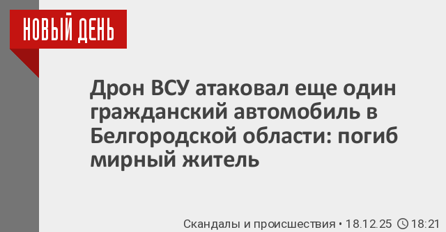 «Когда разговаривал с жителями возле магазина в Грайвороне, сообщили ещё один дрон ВСУ ударил в движущийся автомобиль. Транспортное средство уничтожено огнём. К большому горю, от полученных ранений мужчина скончался на месте», – уточнил губернатор.