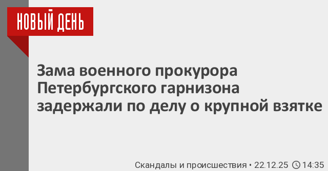 Зама военного прокурора Петербургского гарнизона задержали по делу о крупной взятке