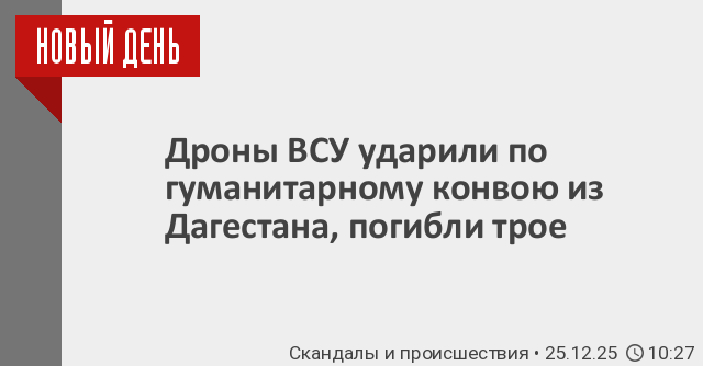 Три человека погибли, один ранен при атаке украинских беспилотников по гуманитарному конвою из Дагестана на приграничной территории. Об этом сообщил глава республики Сергей Меликов.