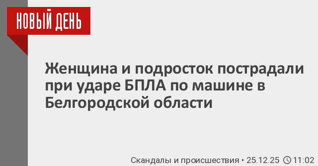 Украинский беспилотник атаковал автомобиль в Белгородской области, пострадали два мирных жителя, в том числе 14-летний подросток. Об этом сообщил губернатор Вячеслав Гладков.