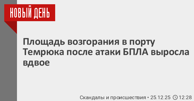 Вдвое выросла площадь возгорания в порту Темрюка Краснодарского края после ночной атаки украинских беспилотников. Там горят два резервуара с нефтепродуктами, огонь полыхает на площади 4 тысячи кв. метров. Об этом сообщает региональная оперштаб.