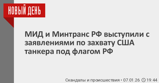 Миниранс РФ и МИД РФ следят за ситуацией вокруг захвата в нейтральных водах танкера под российским флагом. В частности, Минтранс подтвердил, что 7 января в 15:00 танкер Marinera находился за пределами территориальных вод каких-либо стран. В это время на судно высадились военно-морские силы США и Великобритании, после чего российская сторона потеряла связь с судном. В США пояснили – судно находится под санкциями и арестовано по решению федерального суда. Якобы, оно перевозило подсанкционную нефть из Венесуэлы.