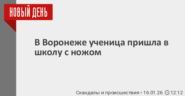 В одной из школ Воронежа ученица пришла на уроки с ножом. По предварительным данным, никто не пострадал. Обстоятельства устанавливаются.