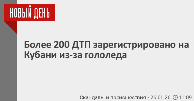 Гололед на дорогах Краснодарского края привел к резкому росту числа ДТП в понедельник, 26 января. Об этом сообщила Госавтоинспекция региона. По ее данным, к утру было подано более 200 заявок на оформление аварий.