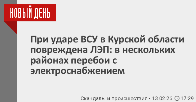 В Курской области в результате удара со стороны вооруженных формирований Украины повреждена линия электропередачи (ЛЭП), в результате чего в нескольких районах начались перебои с электроснабжением и подачей тепла. Об этом сообщил глава региона Александр Хинштейн в своем телеграм-канале.