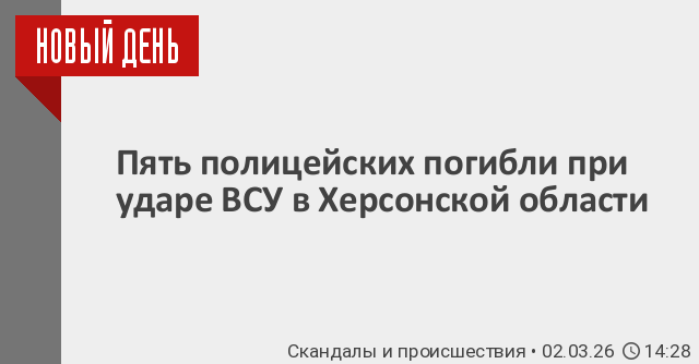 Украинские войска нанесли удар по работникам отдела МВД России «Голопристанский» днем в субботу, 28 февраля, в результате чего погибли пять правоохранителей. Еще шесть пострадавших госпитализированы.