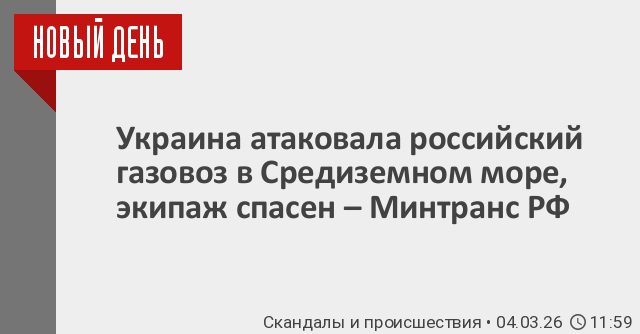 Накануне агентство Reuters со ссылкой на источники сообщало, что в Средиземном море загорелся российский СПГ-танкер «Арктический Метагаз», предположительно, после атаки морским дроном. В нападении на газовоз заподозрили Украину, отметил один из источников.