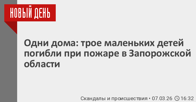 В Приазовском муниципальном округе Запорожской области при пожаре в частном доме погибли трое маленьких детей. Об этом сообщил глава региона Евгений Балицкий в своем телеграм-канале.