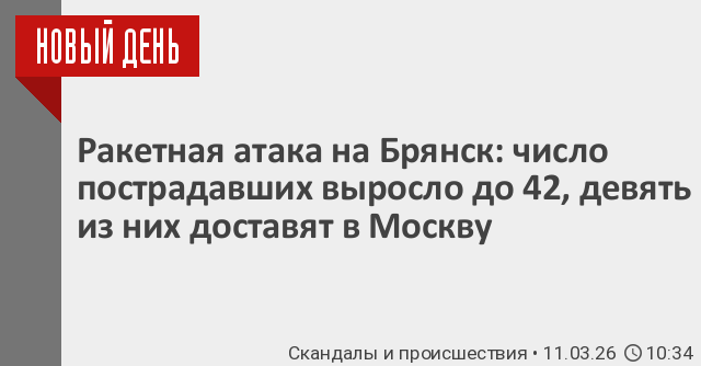 Губернатор Брянской области Александр Богомаз сегодня уточнил, что украинские военные накануне ударили по Брянску семью ракетами Storm Shadow. В результате атаки погибли шесть человек, 42 были ранены, 29 из них госпитализированы, сообщил глава региона. Накануне он заявлял о 37 пострадавших.