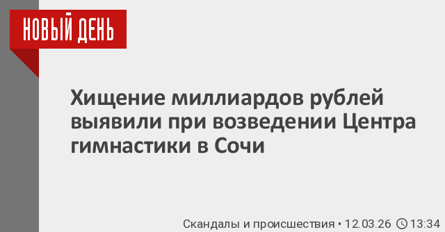 Хищение более 8 миллиардов рублей при строительстве Центра художественной гимнастики в Сочи раскрыто следователями МВД. Об этом сообщила официальный представитель министерства Ирина Волк.