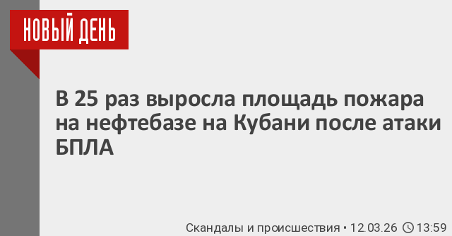 Площадь пожара, возникшего на нефтебазе в пригороде Тихорецка в Краснодарском крае из-за падения обломков украинского БПЛА, достигла 3,8 тыс. квадратных метров, увеличившись в 25 раз. Об этом сообщил региональный оперативный штаб.