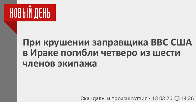 При крушении американского самолета-заправщика KC-135 в Ираке погибли четыре члена экипажа, еще двое считаются пропавшими без вести. Об этом сообщило Центральное командование ВС США (CENTCOM).