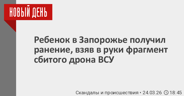 «В хирургическое отделение Васильевской больницы поступил ребенок 2015 года рождения, у которого в руках сдетонировал взрывоопасный предмет. Мальчик поднял часть от беспилотника противника, в результате чего получил ранение руки и ожоги. Ребёнку оказывается медицинская помощь. Благо его жизни ничего не угрожает», – уточнил губернатор.