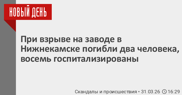 В результате взрыва на «Нижнекамскнефтехиме» погибли два человека и восемь – госпитализированы. Об этом сообщает пресс-служба компании.