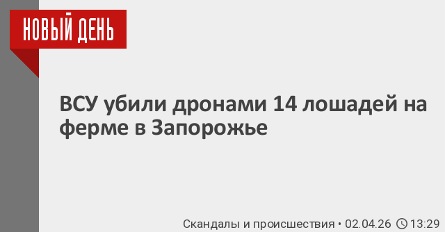 В Запорожской области ВСУ атаковали беспилотниками конную ферму. В результате погибли 14 лошадей. Об этом сообщил губернатор Евгений Балицкий.