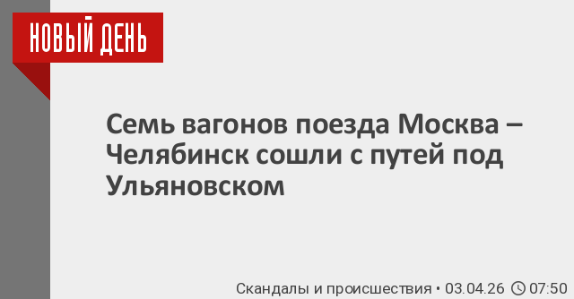 В Ульяновской области сошли с рельсов семь вагонов пассажирского поезда №302 Москва – Челябинск, сообщили в РЖД.