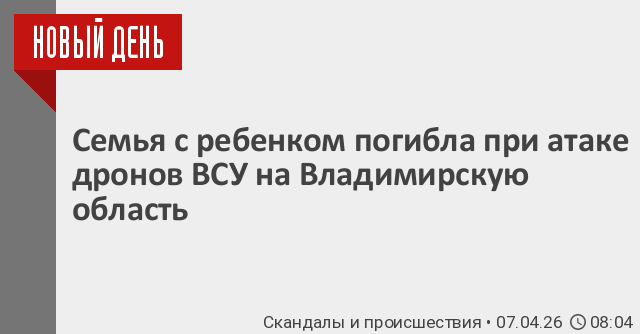 «Сегодня ночью в Александровском районе была совершена атака БПЛА. Один из них попал в двухквартирный жилой дом. Погибли двое взрослых и семилетний сын. Пятилетней дочке удалось спастись, девочка с ожогами в больнице», – написал губернатор в Max. Жизни ребенка ничего не угрожает, уточнил он. Соседи не пострадали. Возникший после атаки пожар ликвидирован.