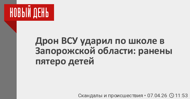 Украинский беспилотник нанес удар по школе в Запорожской области во время занятий. Пострадали пятеро детей и один взрослый. Об этом сообщил губернатор региона Евгений Балицкий.
