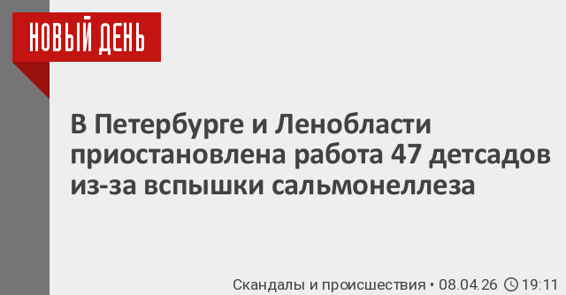 В Петербурге и Ленинградской области приостановлена работа 47 детских дошкольных образовательных учреждений группы компаний «Эрудит» из-за очага сальмонеллезной инфекции среди воспитанников и сотрудников детсадов. Об этом сообщает региональное управление Роспотребнадзора.