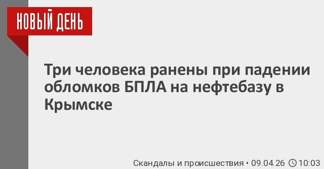 Ночью в Крымске Краснодарского края в результате падения обломков беспилотников ВСУ на территорию нефтебазы пострадали три человек. Об этом сообщил региональный оперативный штаб.