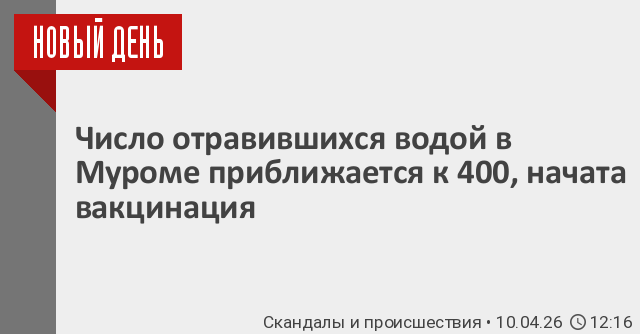 Накануне Следственный комитет РФ после массового отравления жителей Мурома возбудил уголовное дело об оказании услуг, не отвечающих требованиям безопасности. В пробах водопроводной воды и у заболевших обнаружен норовирус второго типа. По версии следствия, выявленный в воде норовирус стал причиной массового отравления жителей. Следователи устанавливают, как вирус мог попасть в систему водоснабжения. На муниципальном предприятии «Водопровод и канализация» проводится проверка. На данный момент нет подтверждений, что в воду попали стоки из-за аварии на городском канализационном коллекторе, которая произошла в минувшие выходные.