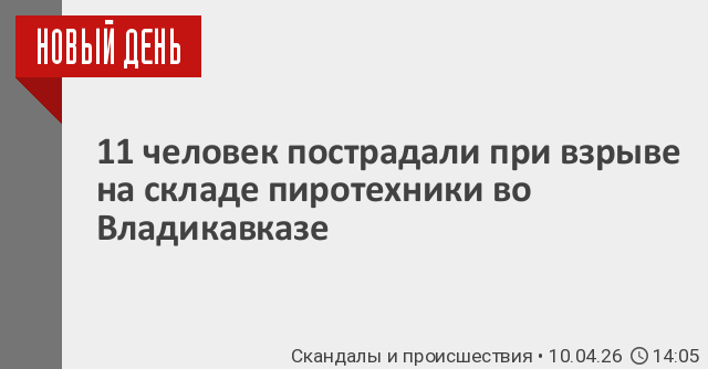 Мощный взрыв прогремел на складе с пиротехническими изделиями в центре Владикавказа. В результате ЧП, по последним данным, пострадали 11 человек, в том числе ребенок. Четверо пострадавших находятся в крайне тяжелом состоянии, сообщил глава республики Северная Осетия – Алания Сергей Меняйло. Следователи начали проверку после инцидента.