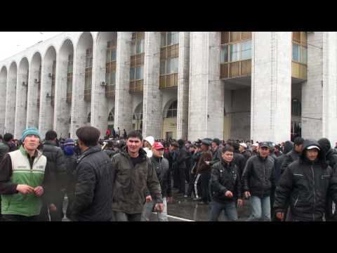 Митингующие на грузовике пытаются протаранить забор вокруг здания правительства. Правоохранители оказывают им сопротивление. Звучат выстрелы, но неизвестно, ведется ли огонь резиновыми или боевыми пулями, отмечает ИА «Фергана.ру». Центральная площадь Бишкека переполнена людьми, количество протестующих увеличивается.