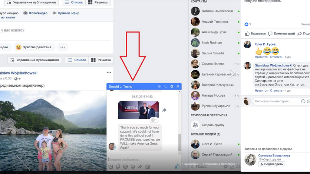 «Я два месяца пиарил его на фейсбуке* на странице американских политических партий, и разъяснял американцам, что Хиллари не их и не им. Заметили. Отметили. Как то так»,– прокомментировал слова американцев блогер.