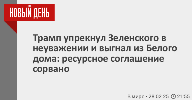 Президент США Дональд Трамп упрекнул главу киевского режима Владимира Зеленского в неуважении. Судя по сообщениям западной прессы, гость Белого дома из Украины вел себя излишне вызывающе. В итоге оказалось, что ресурсное соглашение Киева и Вашингтона не подписано, а Зеленский досрочно покинул Белый дом.