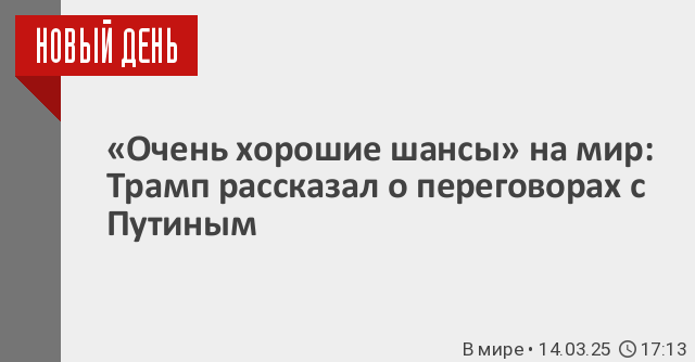 Президент США Дональд Трамп назвал вчерашние переговоры по украинскому вопросу с российским лидером Владимиром Путиным «очень хорошими» и «продуктивными». По его словам, есть «очень хорошие шансы» на мир.