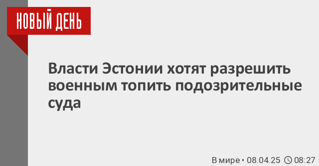 Эстонские власти намерены разрешить военным топить суда, если возникнут подозрения, что те могут повредить подводную инфраструктуру. Соответствующий законопроект рассматривает парламент Эстонии.